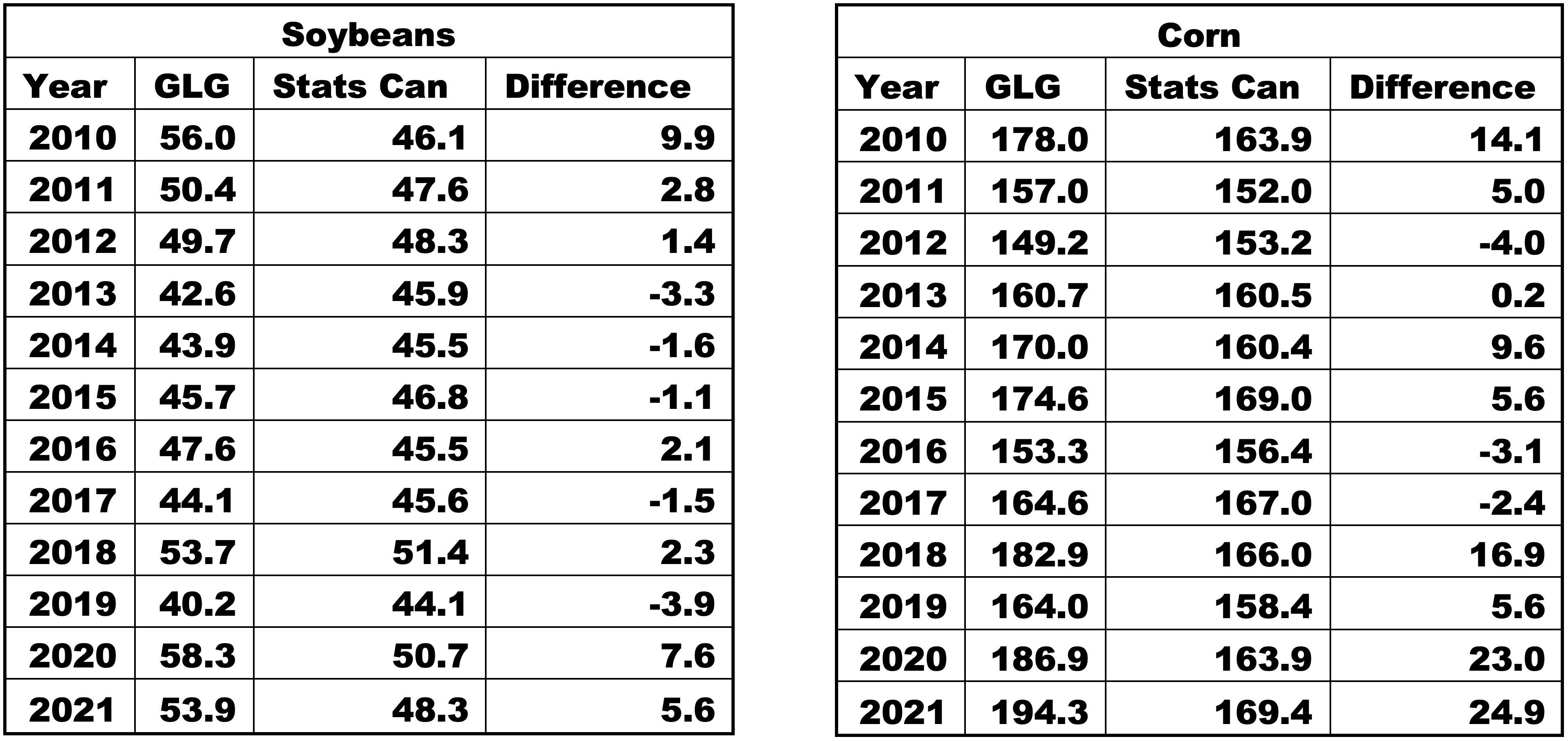 Below is the Great Lakes Grain experience with Statistics Canada data over the history of our tour